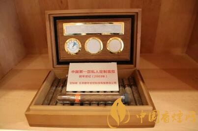 中國(guó)第一款私人定制雪茄“頤年世紀(jì)”(2003年)。