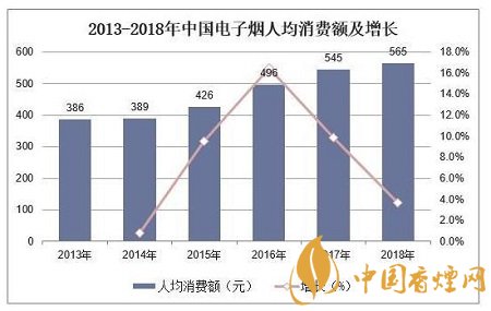 從電子煙人均消費(fèi)額來看,據(jù)統(tǒng)計(jì),截至到2018年,中國(guó)電子煙人均消費(fèi)額為565元,同比增長(zhǎng)3.7%。