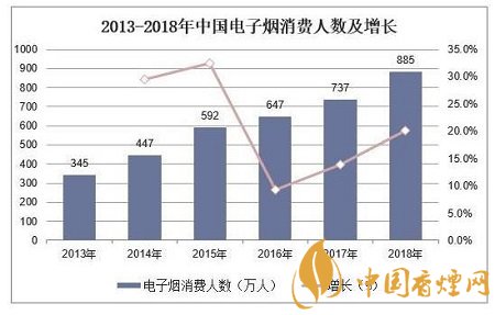據(jù)統(tǒng)計(jì),2018年中國(guó)新型煙草消費(fèi)者數(shù)量約為885萬人,同比增長(zhǎng)20.1%。