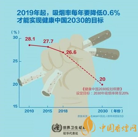 2019年世衛(wèi)組織全球煙草流行報(bào)告發(fā)現(xiàn),有50億人(約占世界人口的65%)目前被至少一項(xiàng)達(dá)到最高水平的MPOWER措施所保護(hù)。因此,全球吸煙率從2007年的22.5%下降到2017年的19.2%,在過去十年里相對(duì)下降了15%。相比之下,中國的吸煙率遠(yuǎn)遠(yuǎn)高于全球平均水平,進(jìn)展也明顯相較緩慢?!督】抵袊袆?dòng)》為深化煙草控制工作,并讓其他部門參與解決這一重要公共衛(wèi)生問題提供了機(jī)遇。2018年成人煙草調(diào)查結(jié)果和《健康中國行動(dòng)》讓我們有理由相信,中國煙草控制的轉(zhuǎn)折點(diǎn)不會(huì)遙遠(yuǎn)。