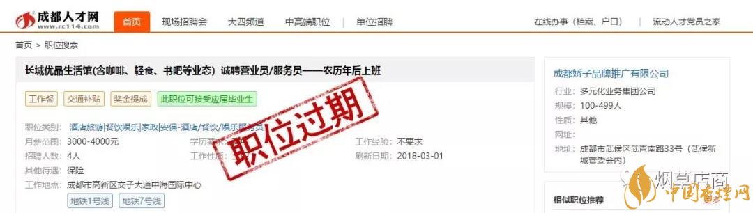 前面為大家介紹了,四川中煙第一次新零售發(fā)聲 創(chuàng)新高質(zhì)量發(fā)展全力謀變(優(yōu)品生活體驗店)。朋友圈里確實有長城優(yōu)品生活館的H5宣傳介紹,而且也確實聲稱自己是“全國首家煙草集合店”。在介紹里面也有它是“煙草、咖啡、輕食、書籍與文創(chuàng)產(chǎn)品”五大生活元素的完美融合者。它是四川中煙產(chǎn)品展示銷售平臺。據(jù)說本月成都長城優(yōu)品生活館開啟。此外,小編也在成都人才網(wǎng)看到了已經(jīng)過期的“長城優(yōu)品生活館(含咖啡、輕食、書吧等業(yè)態(tài))誠聘營業(yè)員/服務(wù)員——農(nóng)歷年后上班”的招聘啟事,通過職位描述可以感受店內(nèi)的大概服務(wù)