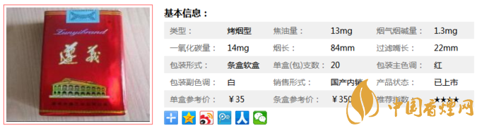 包裝形式:條盒軟盒 |