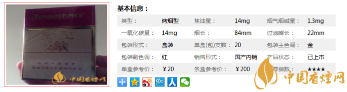 金圣原料種植基地處于武夷山脈、南嶺山脈與羅霄山脈的交匯地帶,這里素有“稀土王國”之稱,是我國三大優(yōu)質煙基地之一,也是全國烤煙農(nóng)業(yè)標準化示范區(qū)。據(jù)小編市場調查所知,金圣功到自然成售價定為20元/包。