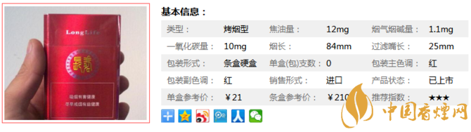 長壽香煙紅的售價為21元/包,特別的烤煙味道,它和國內(nèi)的這些21元檔的香煙完全不是一個概念。