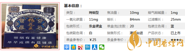 以上便是由香煙網(wǎng)小編為大家介紹的關(guān)于梅花王藍(lán)硬香煙價格及圖片 一款非常難得的臺灣烤煙的相關(guān)信息,想要了解更多有關(guān)內(nèi)容請點擊:白盒臺灣金鹿香煙多少錢一包 新版白盒臺灣金鹿香煙價格10元/包