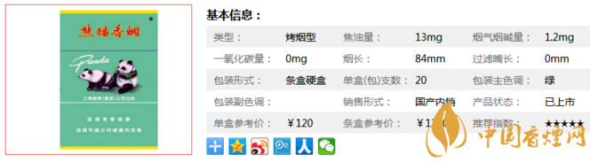 熊貓典藏版香煙相關(guān)信息。