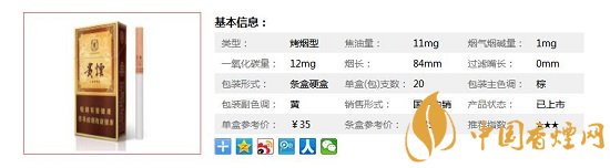 | 煙長(zhǎng):84mm | 過(guò)濾嘴長(zhǎng):25mm | 包裝形式:條盒硬盒 | 單盒(包)支數(shù):20 |