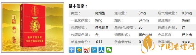 泰山(祥秀)是泰山“秀”字輩中價(jià)格最實(shí)惠的一款,這煙的包裝整體以紅色為主色調(diào),色彩紅火喜慶。雖然口感不是很醇,但煙氣不嗆較柔順??谖镀?,偏淡,在8焦的煙里算不錯的,適合做口糧。下面就由香煙網(wǎng)小編帶大家一起來了解泰山祥秀的相關(guān)信息。