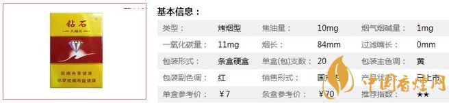 鉆石硬大福元煙支長(zhǎng)84mm,過(guò)濾嘴:25mm,“鉆石(硬大福元)”甄選云貴優(yōu)質(zhì)上等煙葉,采用最新配方技術(shù)調(diào)配而成。煙絲精細(xì)飽滿,口感醇厚,焦油量穩(wěn)定,無(wú)刺鼻嗆喉的情況。下面我們一起來(lái)看鉆石硬大福元的參數(shù)信息:焦油量:10mg 煙堿量:1mg 一氧化碳量:11mg