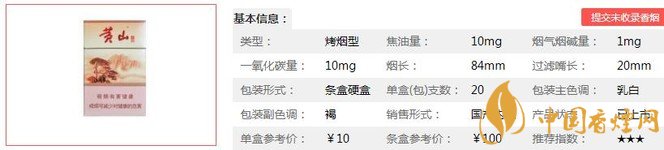 | 類型 :烤煙型 | 焦油量 :10mg | 煙氣煙堿量 :1mg | 一氧化碳量 :10mg |