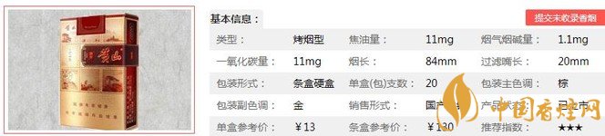 黃山硬錦繡煙支長84mm,過濾嘴:25mm,采用國內(nèi)外優(yōu)質(zhì)原料,以醇化兩年以上煙葉優(yōu)化配方,經(jīng)數(shù)字化調(diào)試及獨創(chuàng)工藝精制而成。下面我們一起來看黃山硬錦繡的參數(shù)信息:焦油量:11mg 煙堿量:1.1mg 一氧化碳量:11mg