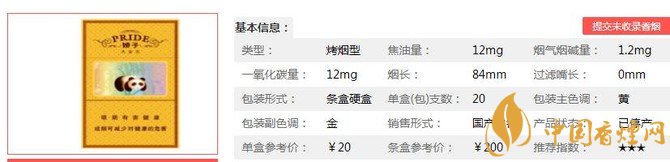| 煙長:84mm | 過濾嘴長:25mm | 包裝形式:條盒硬盒 | 單盒(包)支數(shù):20 |