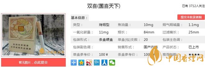 以上便是由香煙網(wǎng)小編為大家介紹的關于雙喜國喜天下多少錢一包 雙喜國喜天下口感及參數(shù)的相關信息,想要了解更多有關內(nèi)容請點擊:七匹狼通??诟屑皡?shù) 七匹狼通福價格21元一包