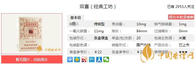 以上便是由香煙網(wǎng)小編為大家介紹的關(guān)于雙喜經(jīng)典工坊多少錢一包 雙喜經(jīng)典工坊口感及參數(shù)介紹的相關(guān)信息,想要了解更多有關(guān)內(nèi)容請點擊:七匹狼通仙3mg多少錢一包 低焦留香滿足感強