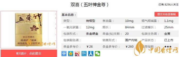 大家都知道,在當(dāng)年五葉神在全國可以說是非常的火熱,引領(lǐng)降焦減害潮流。不僅僅香氣十分突出,品牌效應(yīng)也是非常不錯(cuò)的。雙喜(五葉神金尊)在香煙品牌當(dāng)中也算是打下了一片江山。下面跟著香煙網(wǎng)小編一起來了解雙喜(五葉神金尊)的相關(guān)信息吧。