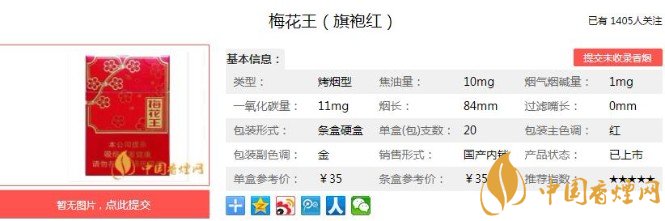 以上便是香煙網(wǎng)小編為大家介紹的關(guān)于梅花王旗袍紅多少錢一包 梅花王旗袍紅價格及口感分析的相關(guān)信息,看完之后大家是不是對于梅花王(旗袍紅)這款香煙的相關(guān)信息更加了解呢。大家還想查詢更多的相關(guān)內(nèi)容歡迎點擊:梅花王硬紅多少錢一包 梅花王硬紅參數(shù)及口感(內(nèi)附圖片)