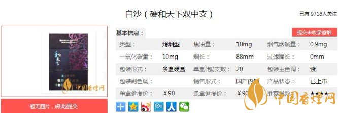 以上便是香煙網(wǎng)小編為大家介紹的關(guān)于白沙和天下香煙價(jià)格及圖片 白沙硬和天下雙中支90元一包的相關(guān)信息,看完之后大家是不是對(duì)于白沙(硬和天下雙中支)這款香煙的相關(guān)信息更加了解呢。大家還想查詢更多的相關(guān)內(nèi)容歡迎點(diǎn)擊:兩次改良終成精品,白沙硬精品三代價(jià)格15元一包!