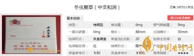 以上便是香煙網(wǎng)小編為大家介紹的關(guān)于冬蟲夏草中支和潤(rùn)多少錢一包 冬蟲夏草中支和潤(rùn)口感及參數(shù)分析的相關(guān)信息,看完之后大家是不是對(duì)于冬蟲夏草(中支和潤(rùn))這款香煙的相關(guān)信息更加了解呢。大家還想查詢更多的相關(guān)內(nèi)容歡迎點(diǎn)擊:冬蟲夏草香煙價(jià)格表圖(6種) 冬蟲夏草(和潤(rùn))香煙細(xì)支價(jià)格1200/條