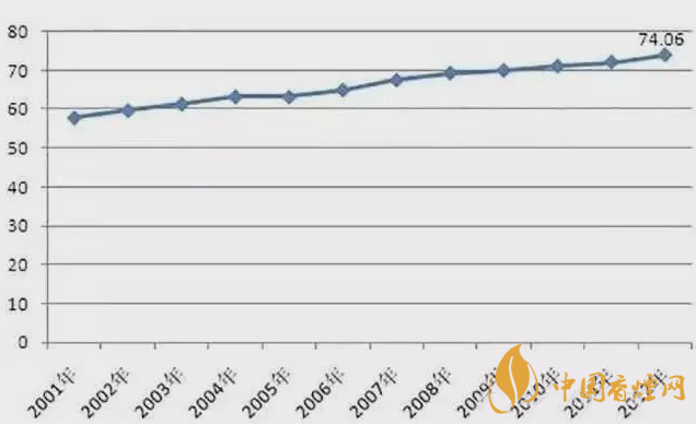 根據(jù)前瞻產(chǎn)業(yè)研究院發(fā)布的《2013-2017年中國煙草制品行業(yè)產(chǎn)銷需求與投資預(yù)測分析報(bào)告》,2001-2012年,中國煙草制品行業(yè)毛利率維持在57%以上的較高水平,且呈現(xiàn)逐年上升的態(tài)勢,到2012年行業(yè)的毛利率達(dá)到了74.06%。