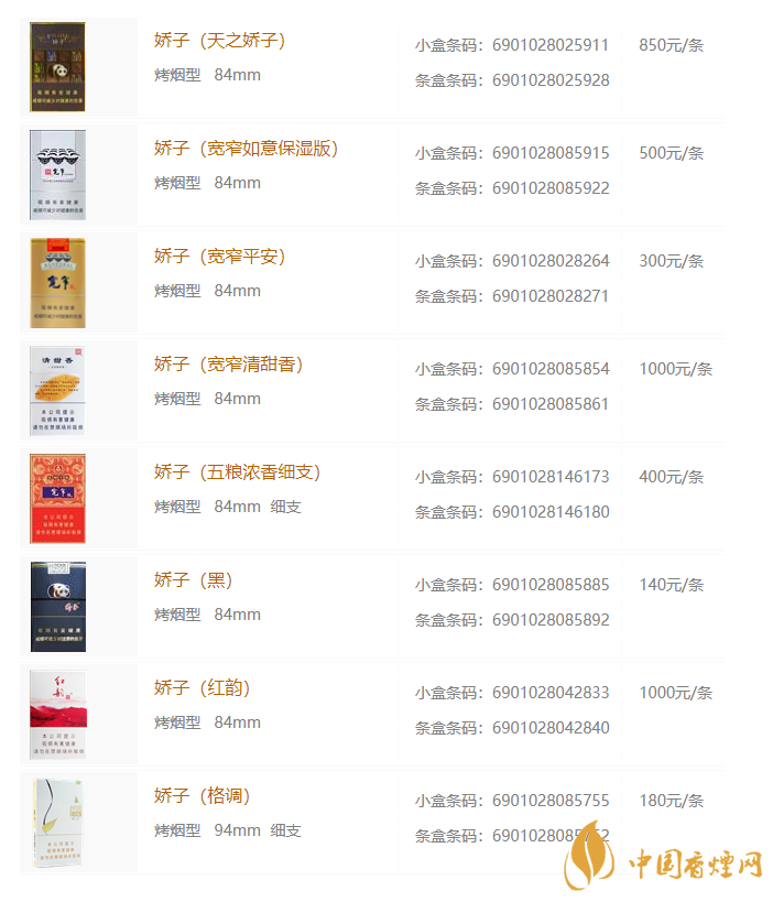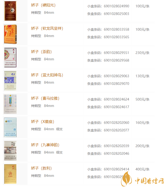 2020年嬌子香煙價(jià)格表圖