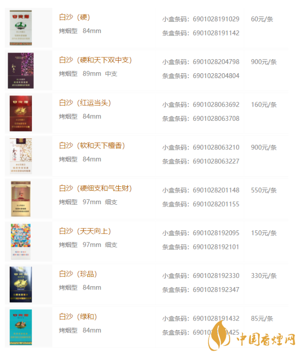 2020年白沙香煙最新價格表和圖片大全