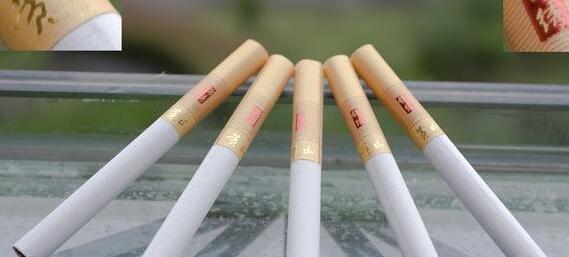 傳統(tǒng)的黃色反光過濾嘴,也被小圓點(diǎn)分成像郵票一樣的小格,有錦繡小條章的那格同樣也有像郵戳的波浪紋。卷煙紙是安徽中煙一貫的橫紋卷煙紙盤紙,煙絲橘黃,香氣帶一點(diǎn)微甜。