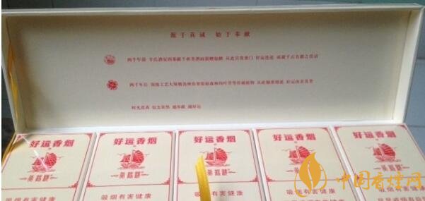 在黃鶴樓香煙大全及價格中,好運有別于樓樓其他品系,凸顯簡單、樸實,沒有以前黃鶴樓香煙的那種花里胡哨的感覺。除了黃鶴樓和好運的品牌標(biāo)識之外,正反面都印有紅色帆船,和“一帆風(fēng)順”的字樣。