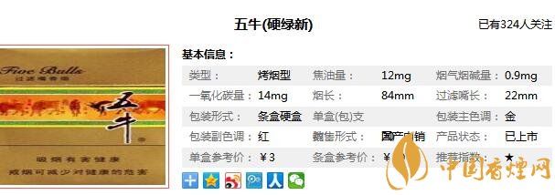五牛香煙參數(shù)信息