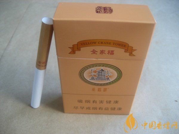 黃鶴樓(硬全家福)外觀不似傳統的祝福型香煙般洋溢著喜慶之意,以淺黃色為主題色系,配以黃鶴樓的品牌LOGO圖案,整體包裝風格簡約大氣。煙支的設計很有個性,過濾嘴的長度達到了36.5mm,可吸部位明顯比傳統香煙短許多。吸味醇香甜潤,煙氣細膩順滑,持灰漂亮,值得品吸的一款祝福型香煙。