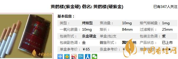 黃鶴樓香煙,作為湖北中煙的代表品牌,黃鶴樓香煙在大多數(shù)煙民心目中都是比較高檔的存在,黃鶴樓高檔香煙也是非常的多,作為我國(guó)品種最為豐富的香煙品牌而言,紫金黃鶴樓多少錢(qián)一包,現(xiàn)在就由香煙網(wǎng)小編為大家介紹一下黃鶴樓硬紫金圖片價(jià)格。