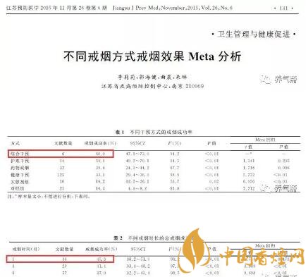 2015年江蘇省疾病預(yù)防控制中心統(tǒng)計(jì)了1989-2014年之間的208項(xiàng)戒煙研究記錄,結(jié)果表明:以藥物干預(yù)+健康干預(yù)的綜合干預(yù)方式效果最好,戒煙用時(shí)越短越好。