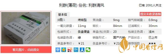 利群薄荷俗名利群清風(fēng),這煙的包裝給人一種清新的感覺(jué),煙香淡雅清新,涼意絲絲,比較舒適。就像這款產(chǎn)品宣傳語(yǔ)所說(shuō)的一樣:“如雪山與清流,如云霧與樹(shù)林,淡雅的綠傳遞清新,薄荷的涼意,讓吸味充滿愉悅清潤(rùn)”。經(jīng)香煙網(wǎng)小編市場(chǎng)調(diào)查利群薄荷售價(jià)為21元/包。