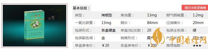 | 煙長(zhǎng):84mm | 過濾嘴長(zhǎng):20mm | 包裝形式:條盒硬盒 | 單盒(包)支數(shù):20 |