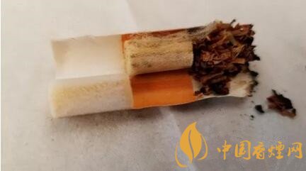 湊近撕開的煙盒,基本沒有什么外香溢出。抽出煙支,84mm規(guī)格下水松紙長度為38mm。應該還有一截拼裝段在水松紙內(nèi),大概在云煙的煙字那個位置。