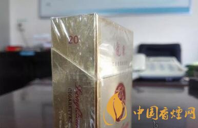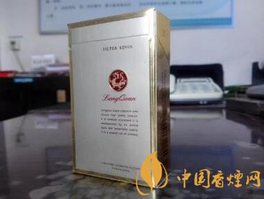 又是款淺金色調(diào)為主、修飾以深色金邊框的包裝設(shè)計(jì),有些像芙蓉王硬黃的造型。圓圈中的金龍?jiān)煨停袷浅橄螽嫹ǖ?,沒有真龍或者其它帶有龍的圖案香煙的豐滿與霸氣。