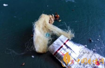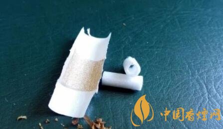 長(zhǎng)約6mm的材質(zhì)較硬的六邊形鏤空過(guò)濾嘴。