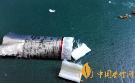 剪開(kāi)鏤空樣式的過(guò)濾嘴,會(huì)發(fā)現(xiàn)有一層薄薄的黃色紙張,附著于過(guò)濾嘴紙張之上。鏤空過(guò)濾嘴的長(zhǎng)度,約為6mm。