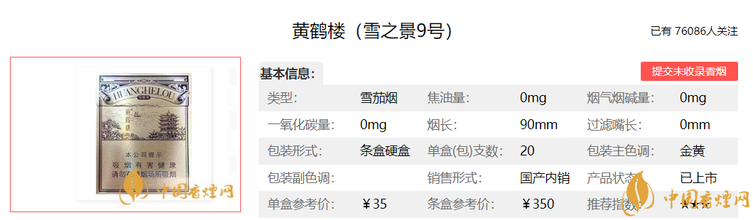 這款黃鶴樓雪之景9號非常不錯,我曾經買過1條,市場標價都在每盒36元,外觀和煙支做工都很細膩,我去買的時候老板娘子讓我只給270元一條,我很意外!當我第二次去那個店的時候,老板娘告訴我沒有這個煙了,這個煙不好拿,是當時有人出差武漢捎回來的!