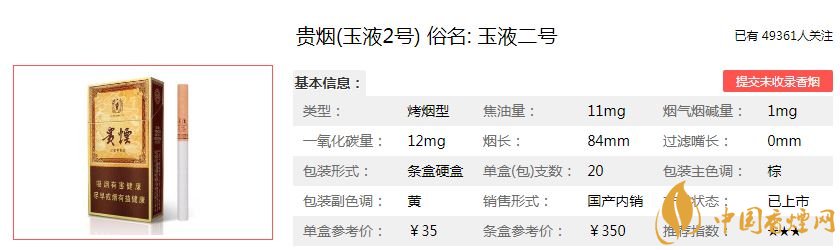 貴煙創(chuàng)牌于1978年,距今已有四十多年的歷史了,貴煙在煙草市場(chǎng)一直是享譽(yù)盛名。今天香煙網(wǎng)為大家介紹一款貴煙玉液2號(hào)香煙。下面是貴煙玉液2號(hào)的價(jià)格參數(shù)以及抽過的煙民對(duì)這款煙的評(píng)價(jià),一起來看看吧。