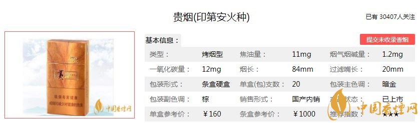 貴煙福香煙50元/包,這款煙的焦油含量11mg,煙氣一氧化碳含量12mg,煙氣煙堿含量1.1mg,煙勁很足,口感舒適。