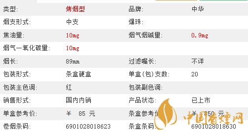 小盒條碼:6901028018623 條包條碼:6901028018630 單包支數(shù):20