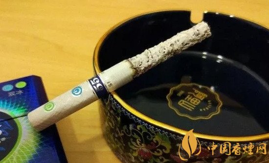 按滅第一根的煙頭我又好奇的點(diǎn)燃第二支,這次我不打算捏藍(lán)色爆珠,忽略前段寡淡的吸味,隨著吸食的進(jìn)度煙氣漸濃,遺憾的是由于薄荷味道的攪局,沒有感受到特別明顯的英烤特征,不過煙氣仍然有英烤那特有的生硬之感。由于煙絲的填充較為了飽滿,所以吸阻相對(duì)較大,但持灰良好,吸食到三分之一處,捏碎綠色爆珠,煙灰仍然屹立不倒,不折不彎筆挺如初。