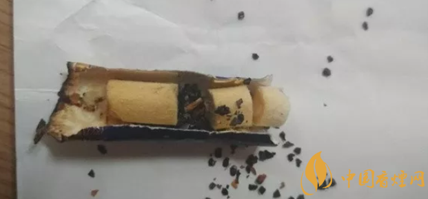 真龍海韻軟盒好抽嗎?煙支為普通煙長度,濾嘴也是正常長度。濾嘴紙一側(cè)印有真龍字樣,對應(yīng)那邊印有南海龍王字樣。濾嘴紙包裹濾芯非常緊,剪刀插不進(jìn)去,上圖是樓主用小刀劃開的第三支煙蒂。整支濾芯分四個部位,從煙葉接觸處點(diǎn)來算是:長海綿濾芯→活性炭→短海綿濾芯→硬海綿濾芯圈。
