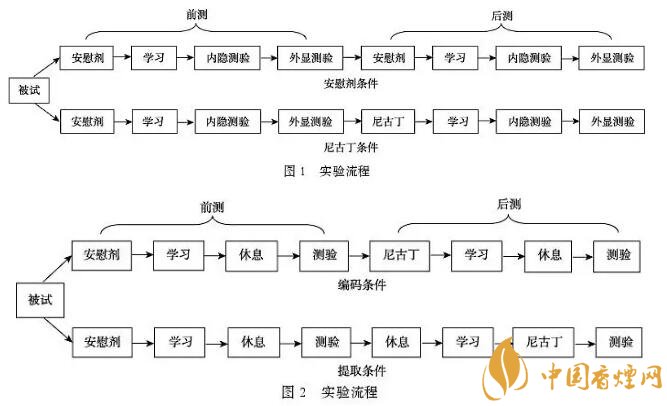 為進一步探討尼古丁對兩種記憶的影響,實驗 2 分別在編碼前與提取前攝入尼古丁, 觀察其對兩種記憶不同階段的影響, 并使用 ERP 技術(shù)觀察其中受影響的成分。實驗設(shè)計為2(加工水平:深/淺)×2(攝入階段:編碼/提?。?times;2(前后測:前測/后測)的被試內(nèi)設(shè)計。