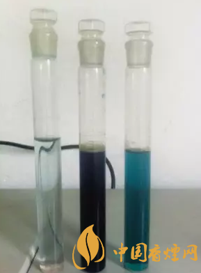 左二黑色瓶為收集煙氣后情況(濃度太高,超出儀器讀數(shù)范圍) 左三藍(lán)色瓶為經(jīng)過加水稀釋后做實驗的樣品。