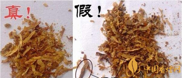 真品卷煙的煙絲顏色較為一致,光澤油潤(rùn),切絲寬度均勻,且無(wú)雜質(zhì)、煙末;假冒卷煙一般煙絲較碎,寬窄不一致,有較多雜質(zhì)且缺乏油潤(rùn)性。