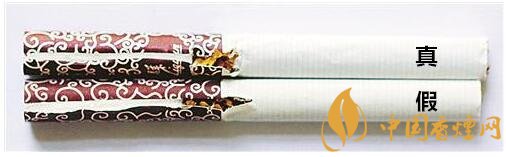 真煙采用機(jī)器燙封一次成型,封口較平整,拉線(xiàn)頭為規(guī)則的半橢圓形,右側(cè)垃圾桶圖示上方“方塊”筆畫(huà)較粗;假煙一般采用手工電烙鐵燙封,封口起皺較大,拉線(xiàn)頭形狀不規(guī)則,右側(cè)垃圾桶圖示上方“方塊”筆畫(huà)較細(xì)。