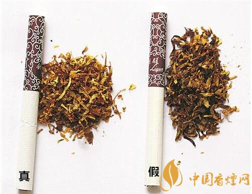 真煙煙絲切絲寬度均勻,煙絲疏松、光澤油潤(rùn)性好、呈檸檬黃色、含碎末少,煙絲結(jié)構(gòu)為葉絲、膨脹葉絲;假煙制絲工藝粗糙,色澤發(fā)暗無(wú)光澤、煙絲中含碎末較多,摻有膨脹梗絲和再造煙葉。