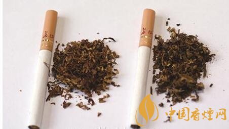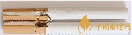 真煙煙支采用單一醋纖濾嘴,長度為25mm,煙絲切絲寬度均勻,煙絲疏松、光澤油潤性好、呈檸檬黃色、含碎末少,煙絲結(jié)構(gòu)為葉絲、膨脹葉絲、膨脹梗絲和再造煙葉;假煙煙支過濾嘴較短,長度約為20mm,制絲工藝粗糙,色澤發(fā)暗無光澤、呈青褐色、煙絲中含碎末較多,大量梗絲未經(jīng)過膨脹處理,一般無膨脹葉絲和再造煙葉,與真品特征存在明顯差異。