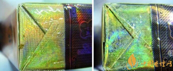 真品小盒商標(biāo)紙采用專屬高端特供進(jìn)口材質(zhì)的紙張,適用于軟包硬化包裝工藝硬度材質(zhì),顏色以黃金色為主色;假煙小盒商標(biāo)紙是普通材料,紙質(zhì)低劣,比較薄、沒有硬度,顏色呈現(xiàn)出淡黃色,與真品顏色差異明顯。